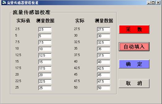接下来设置流量传感器,此数据为50KG电子称台数据,请用户根据设备实际配备的电子秤台来进行具体设置。