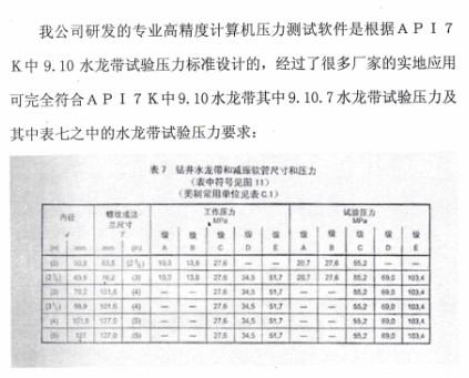 c) 压力无级调节,靠计算机软件控制;试压泵本身的一些硬件功能包括:“开始”、“暂停”、“卸压”、“手动调压”等;