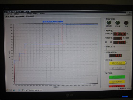 该计算机控制系统配套试压泵为3D-SY130Mpa,额定排出压力130Mpa。额定流量是150L/h,配套为变频电机功率5.5Kw。